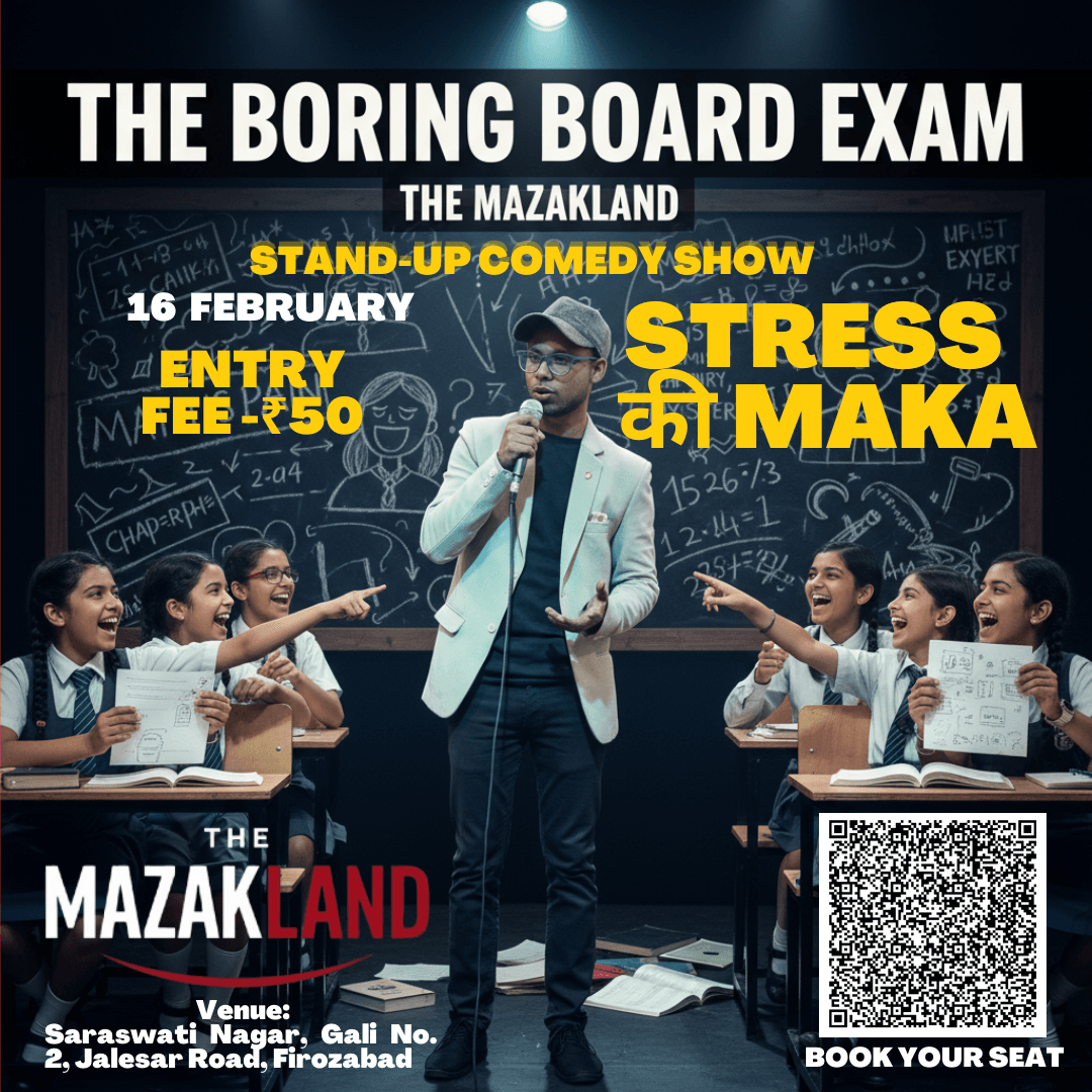 MAZAKLAND is a stand-up comedy show that doesn’t just make you laugh,it helps untie the knots of the mind.Here, laughter isn’t just entertainment—it’s a process of mental relief that reduces stress, stops overthinking,and brings calm to the mind.